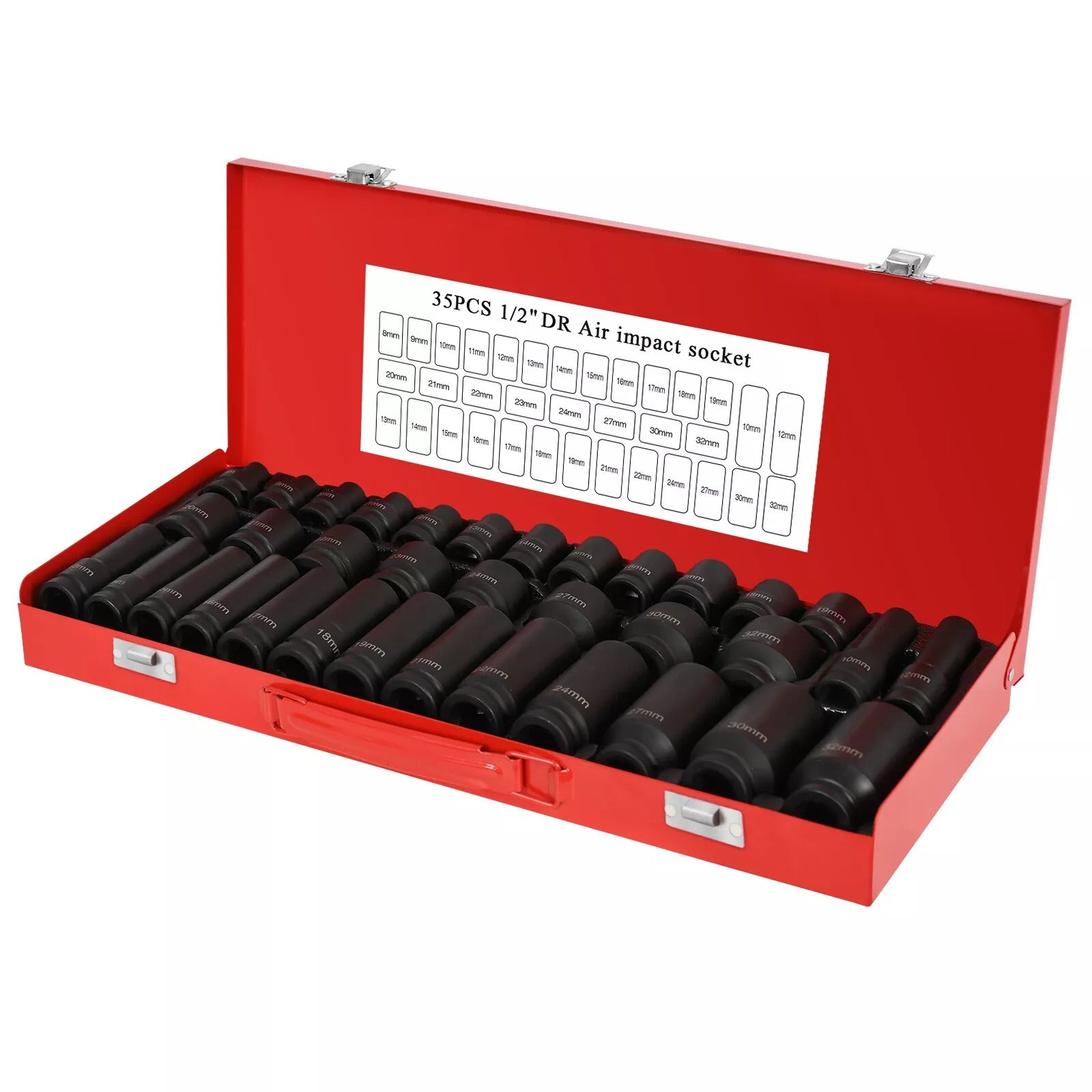 35 PC IMPACT SOCKET SET 1/2" DRIVE 8-32 MM (STANDARD & DEEP)